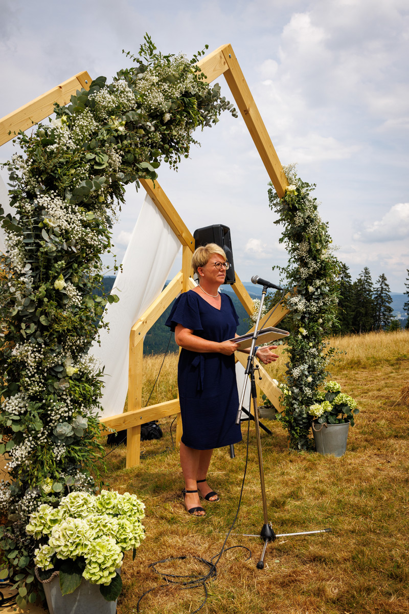 Vor langer Zeit habe ich meine Ausbildung zur Verwaltungsfachangestellten bei der Gemeinde Feldberg gemacht. Nach ein paar Jahren Berufserfahrung lies ich mich in einem zweiwöchigen Lehrgang zur Standesbeamtin ausbilden. Seit 2009 bin ich Standesbeamtin bei der Gemeinde Feldberg. Ich liebe mein Beruf und genau das hat mich auf die Idee gebracht mich als freie Traurednerin selbstständig zu machen. Es ist sehr spannend für mich, Brautpaare auf ihrem Weg in die gemeinsame Zukunft begleiten zu dürfen.